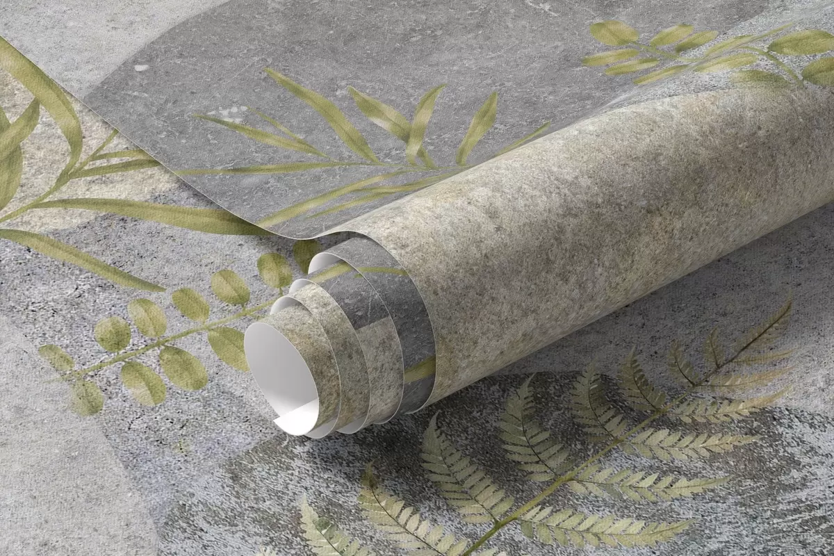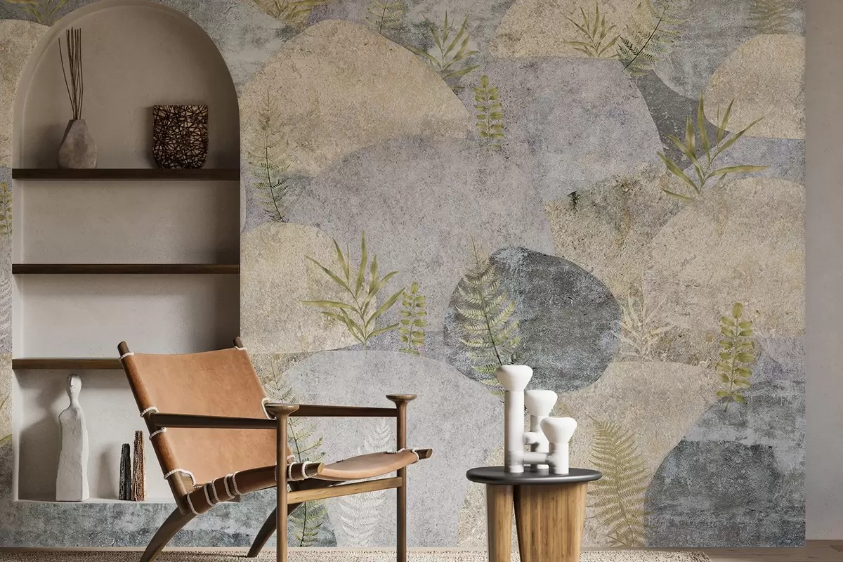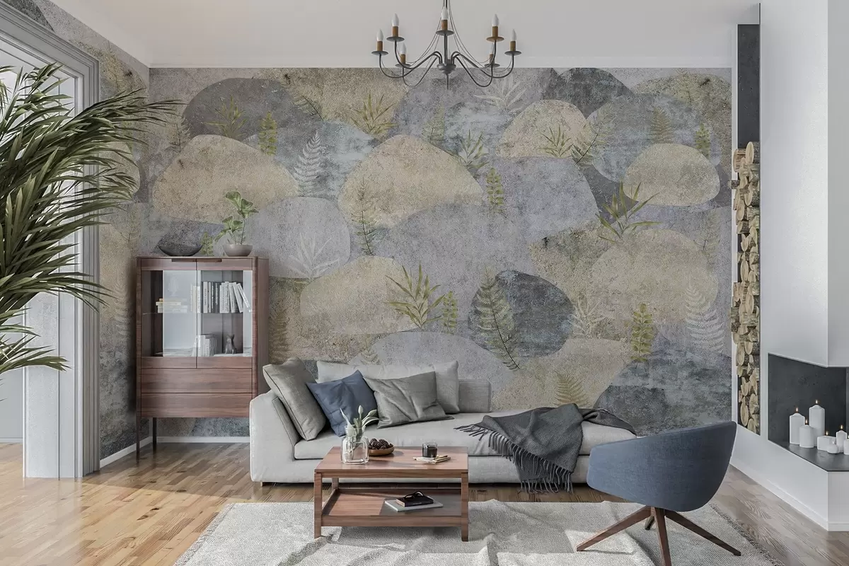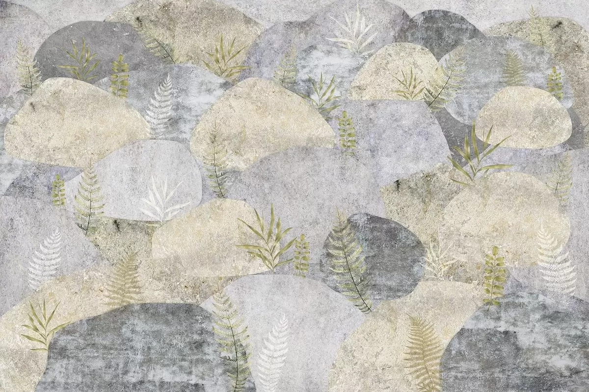 Fototapeedid Taimedega kivid, sõnajalad, põhjamaine, rustikaalne stiil, halli ja liiva värvid Nr w04064