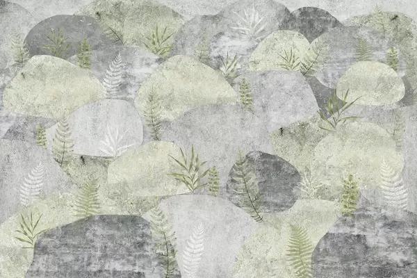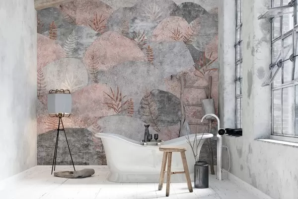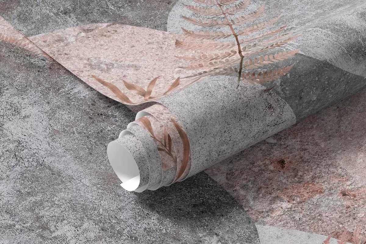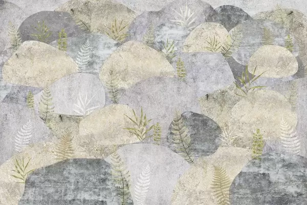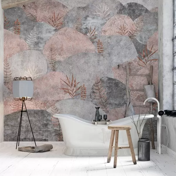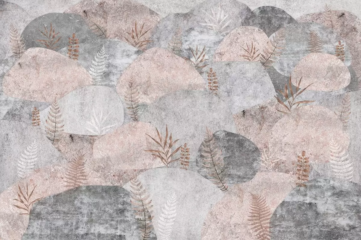 Fototapeedid Taimedega kivid, sõnajalad, põhjamaine, rustikaalne stiil, hallid ja roosad värvid Nr w04064v1