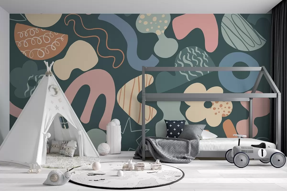 Fototapeedid Geomeetrilised joonised koos doodles joonistus, noorukite, tumeroheline taustaga Nr w04068v3