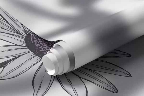 Fototapeedid Balleriinide siluett, maalilised lilled, joonekunst, hallid ja lillad värvid w04069v2