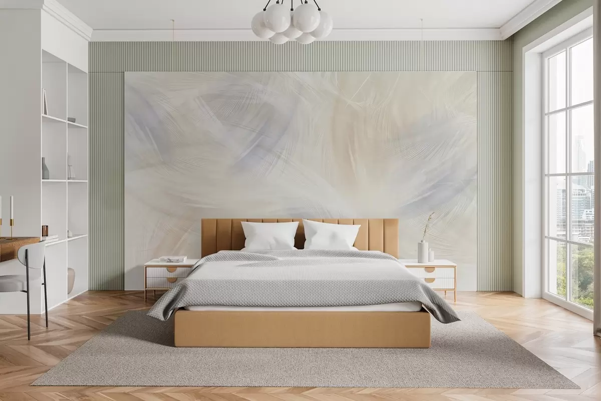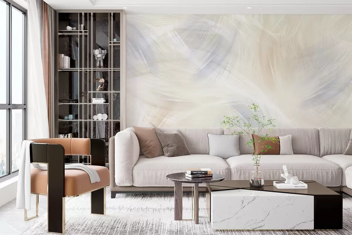 Fototapeedid õhulised suled sinise ja beeži toonides Nr w04071v2