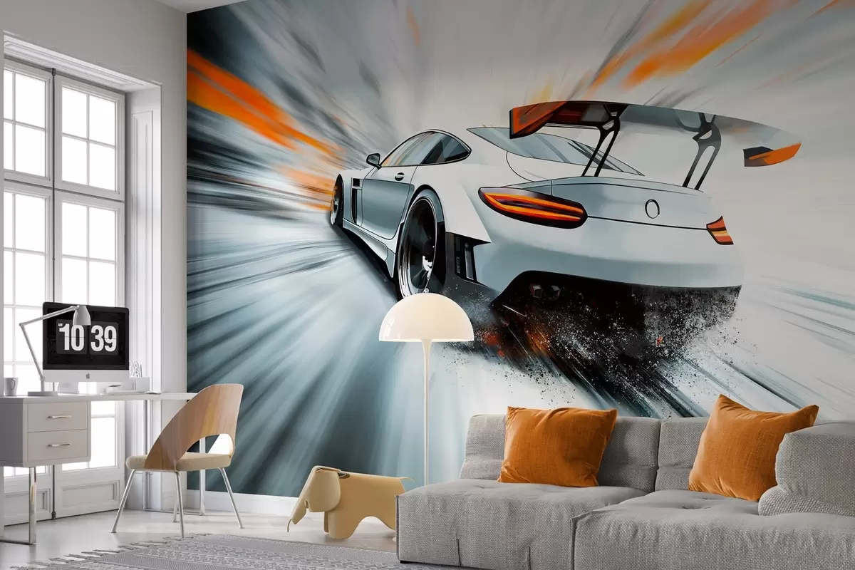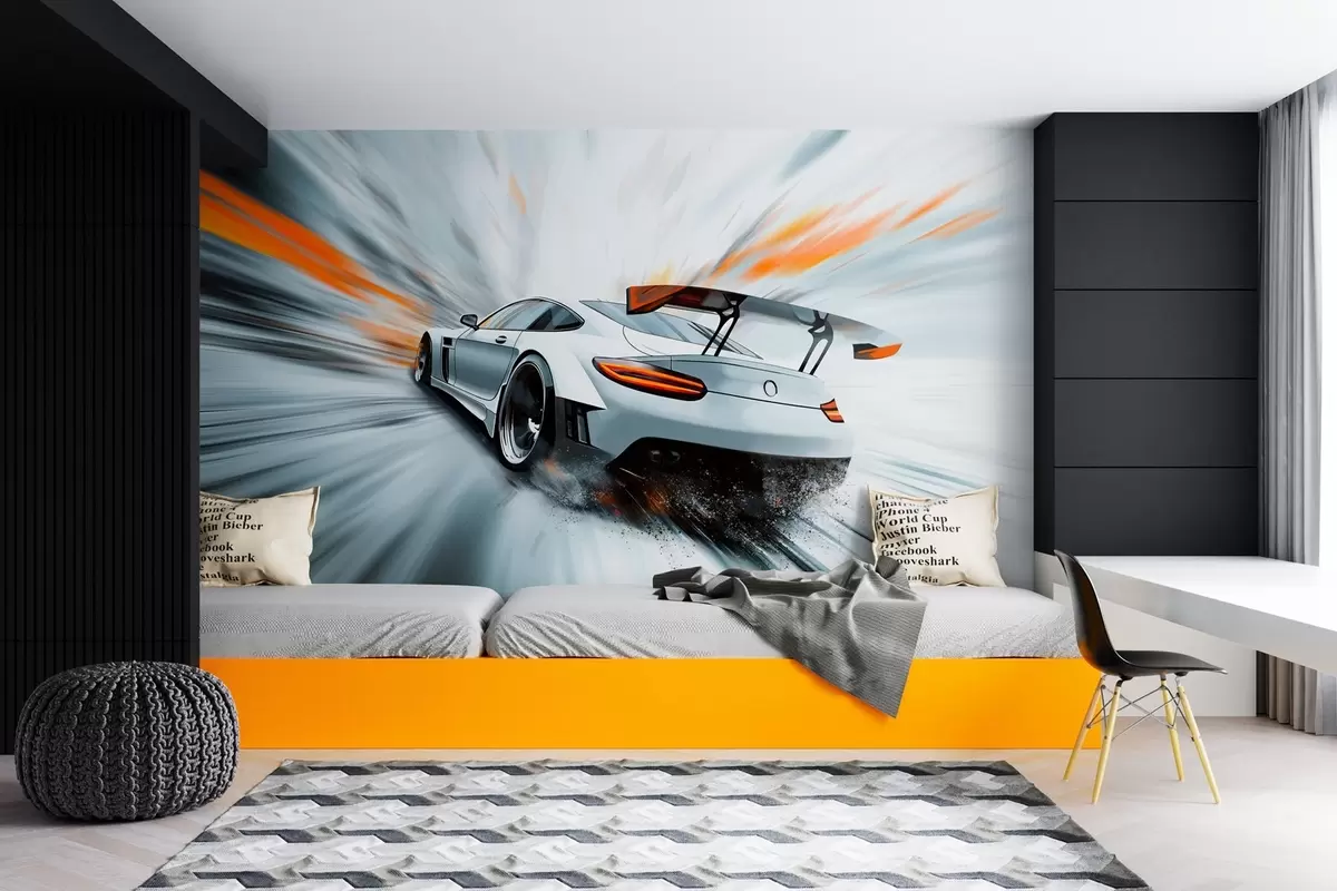 Fototapeedid dünaamiline sportauto, mis tormab läbi ruumi Nr w04074