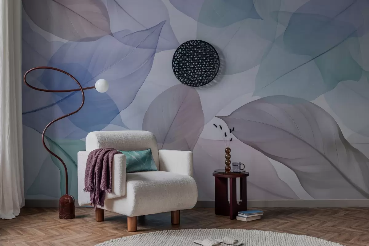 Fototapeedid Läbipaistvad lehed siniste ja pruunide toonidega veenidega Nr w04075