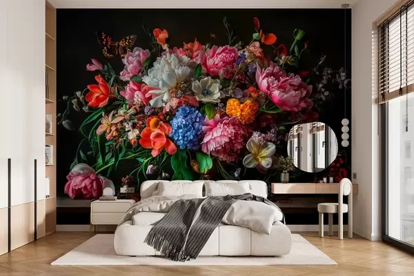 Fototapeedid xVII sajandi Hollandi õlimaalide stiilis luksusliku lillekompositsiooniga kimp Nr w04078