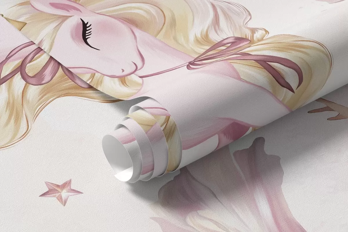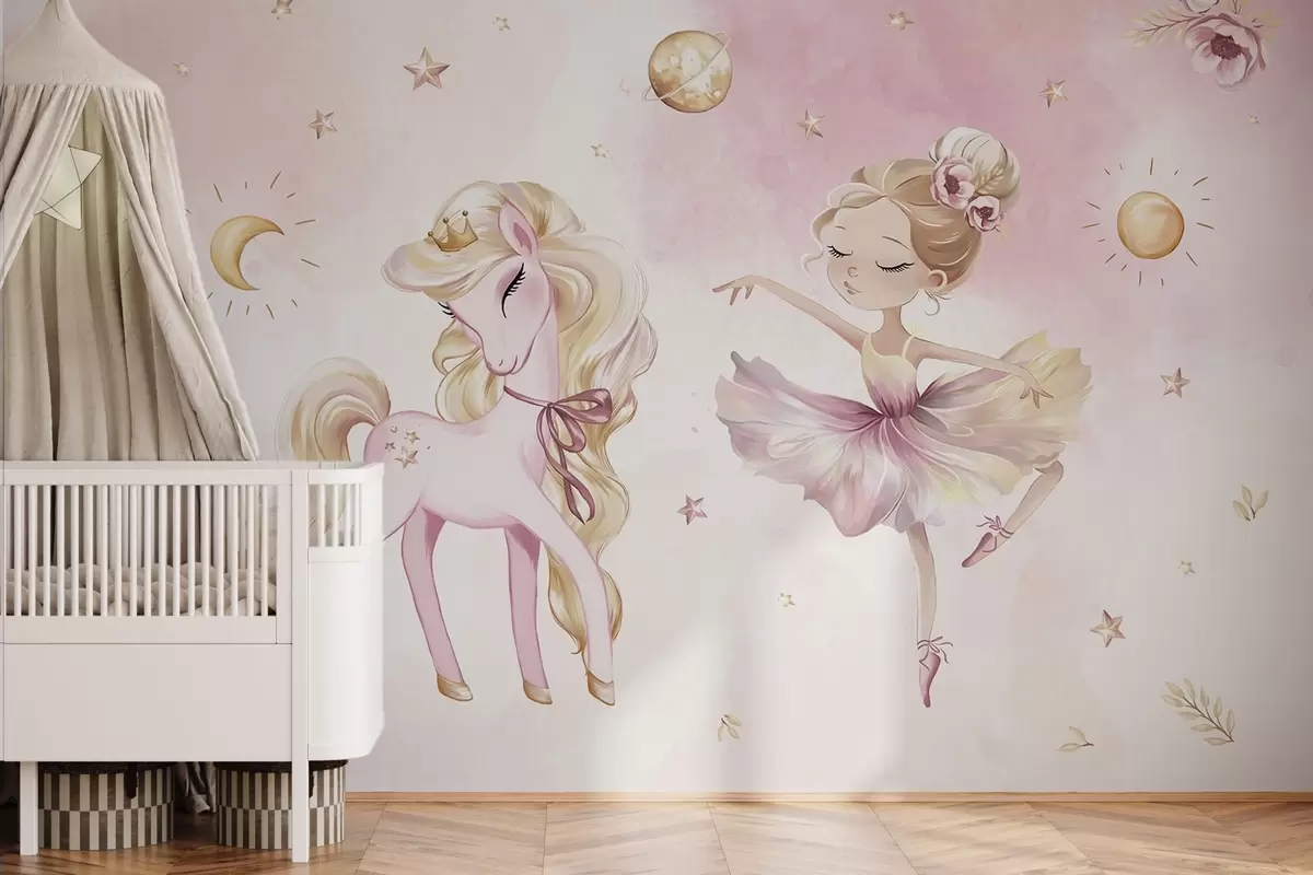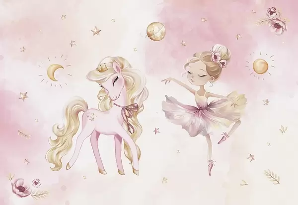 Fototapeedid Ükssarvik ja baleriin roosa muinasjutt, lastejutt Nr w04196