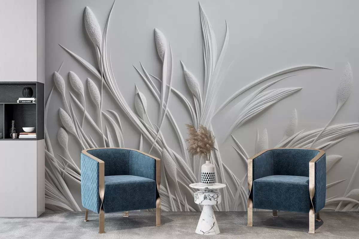 Fototapeedid Bas-reljeef õrnade lehtede ja pampadega Nr w04247