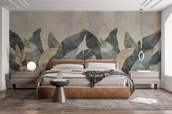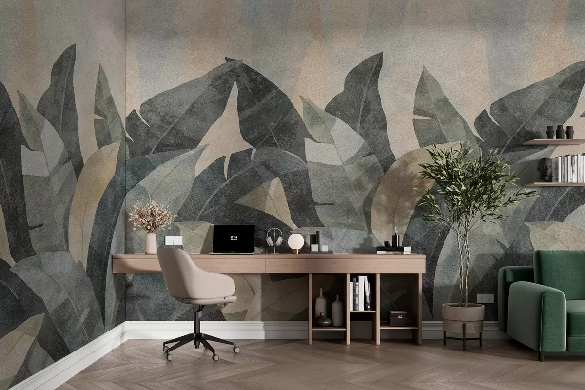 Fototapeedid naturaalsetes beeži, rohelise ja halli toonides tekstureeritud banaanilehed Nr w04285