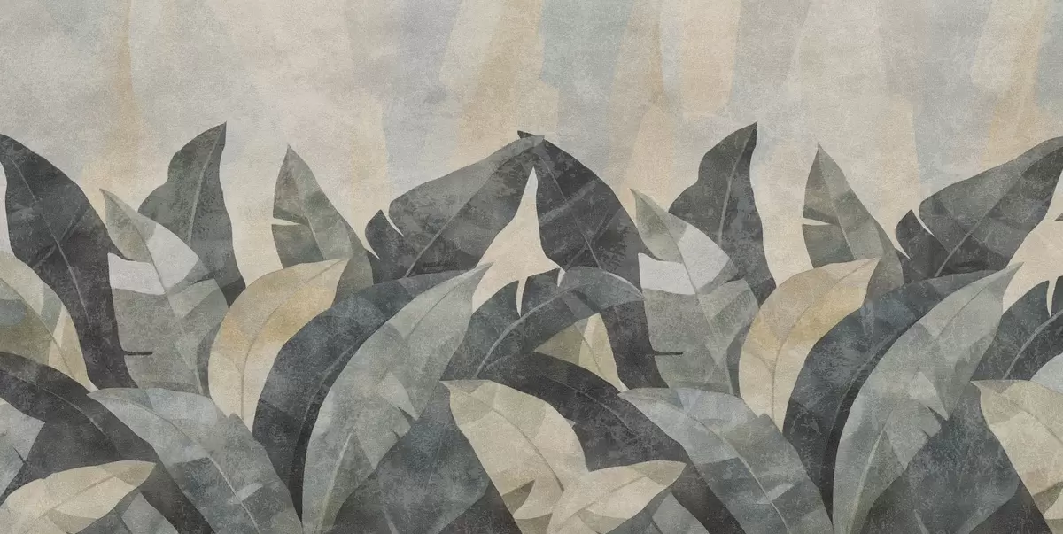 Fototapeedid naturaalsetes beeži, rohelise ja halli toonides tekstureeritud banaanilehed Nr w04285