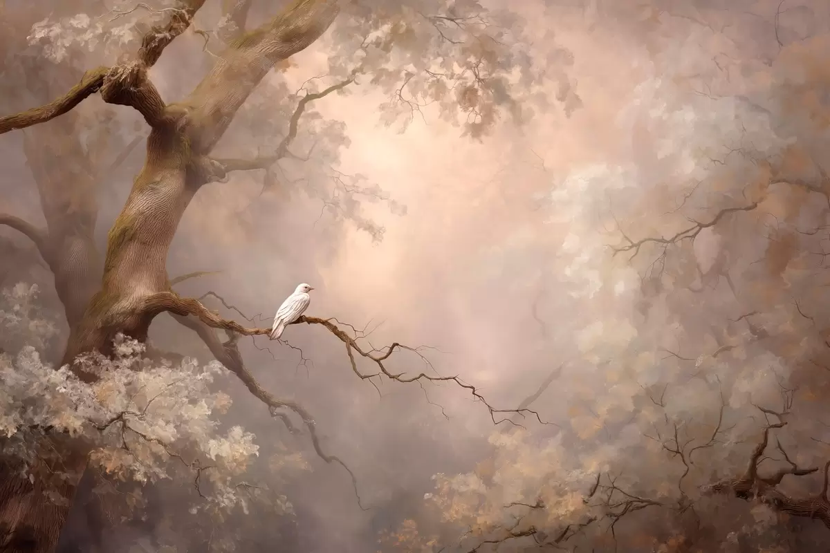 Fototapeedid müstiline mets koos valge linnuga Nr w04314