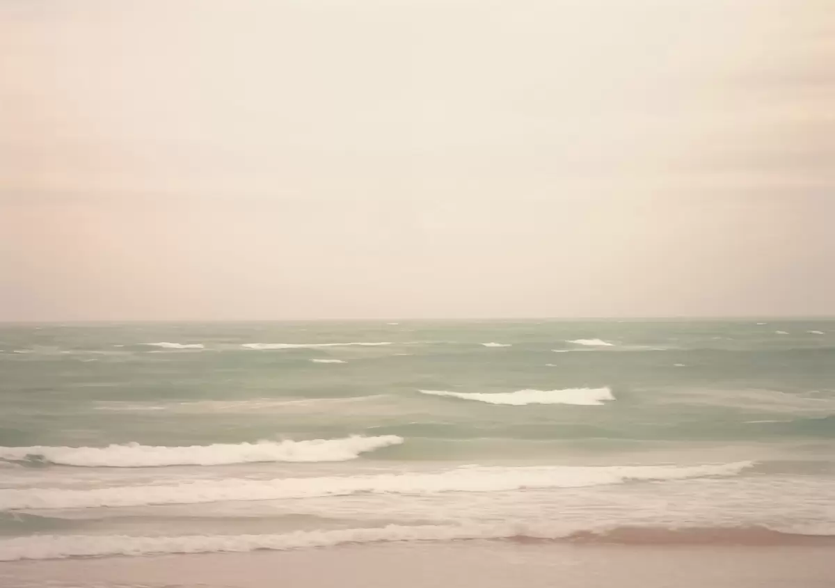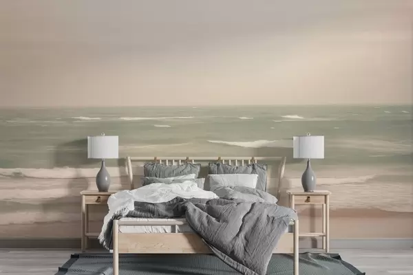 Fototapeedid Pehme roosa-roheline meremaastik õrnade lainetega Nr w04348