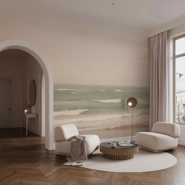 Fototapeedid Pehme roosa-roheline meremaastik õrnade lainetega Nr w04348