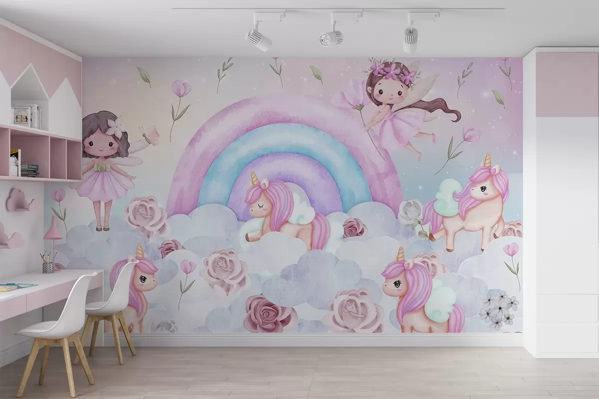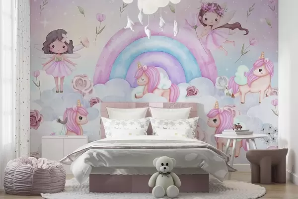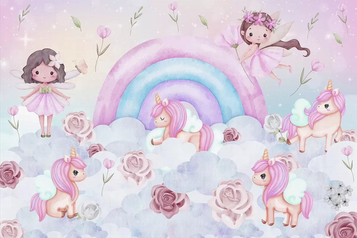 Fototapeedid Muinasjutud ja ükssarvikud pilvede ja vikerkaare vahel Nr w04371