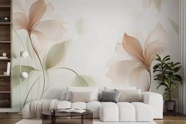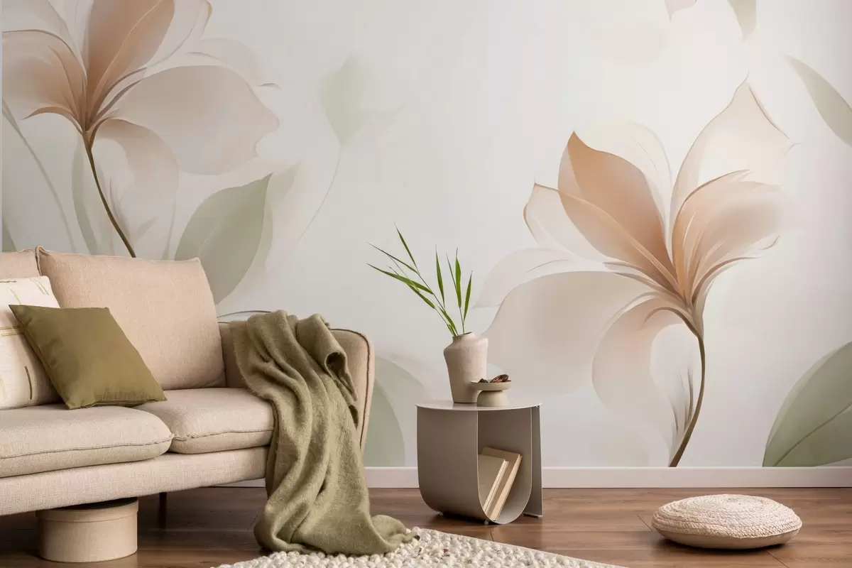 Fototapeedid Läbipaistvad lilled soojades beežides ja roosades toonides Nr w04397