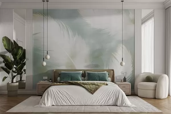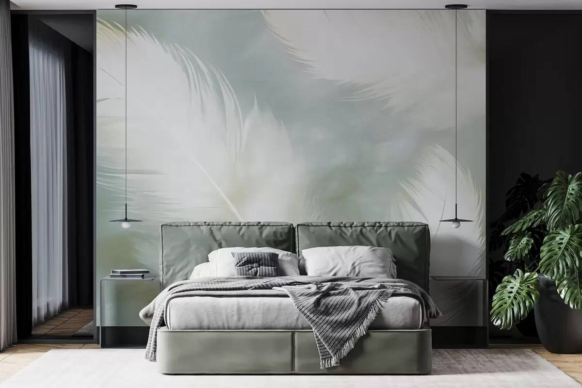 Fototapeedid Õrnad valged suled pehme piparmündi taustal Nr w04399