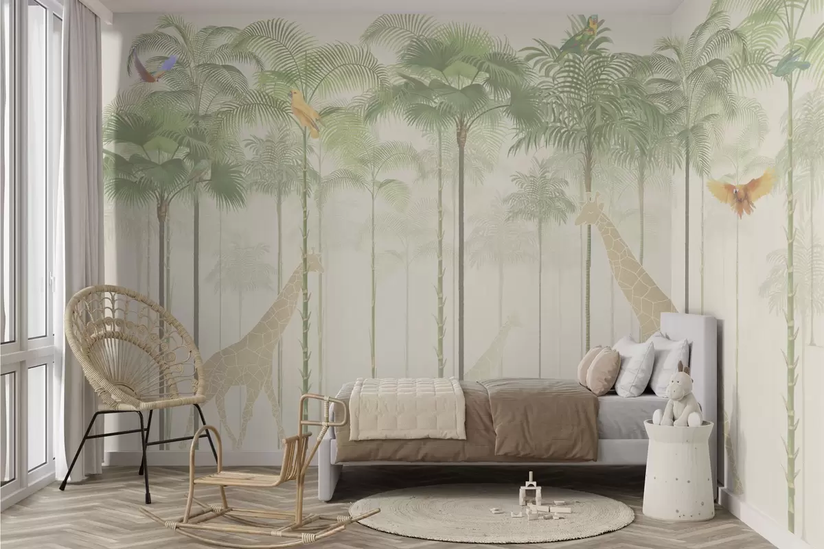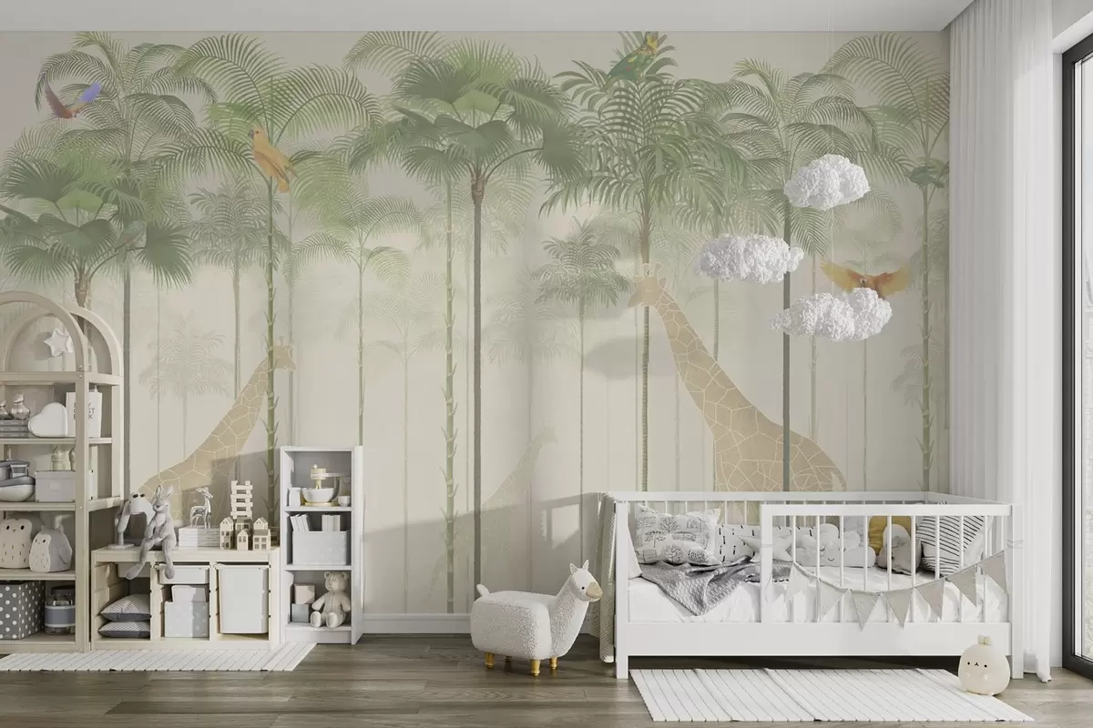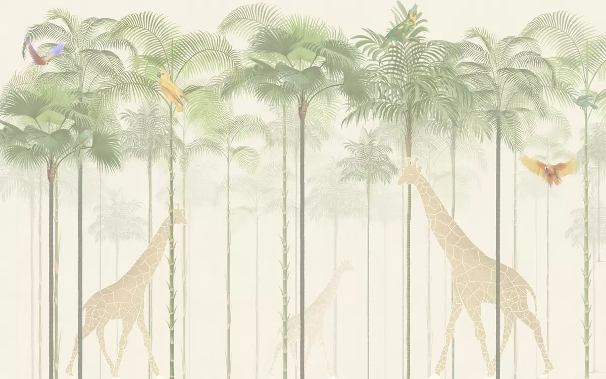 Fototapeedid Kaelkirjakud ja troopilised linnud kõrgete palmide vahel Nr w04400