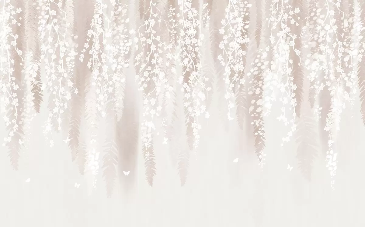 Fototapeedid Valgete lilledega heledad oksad õrnal taustal Nr w04417
