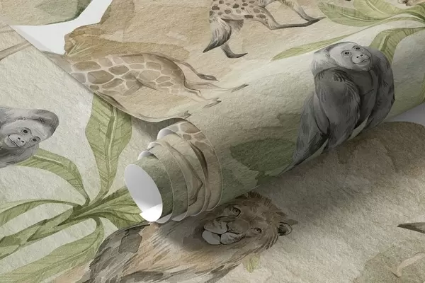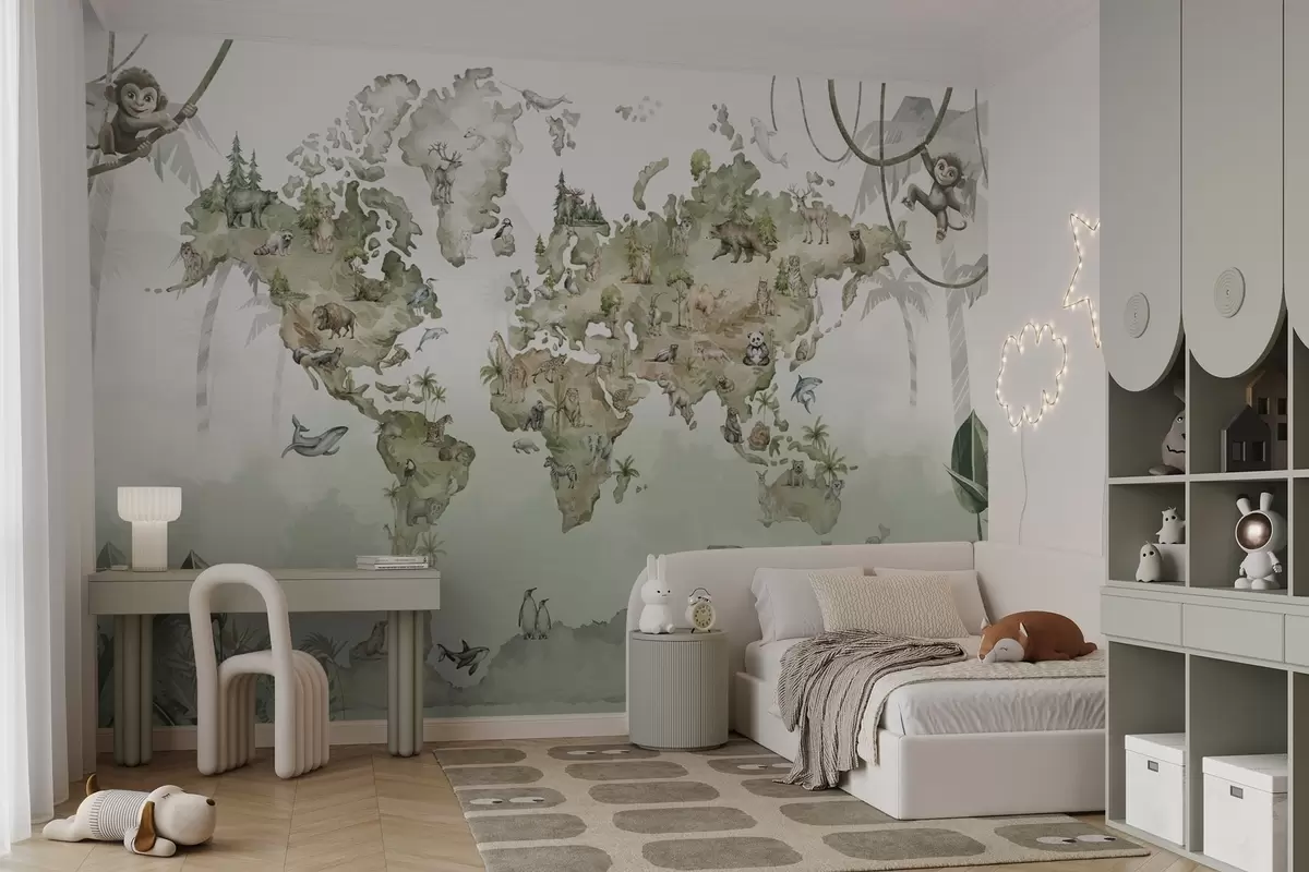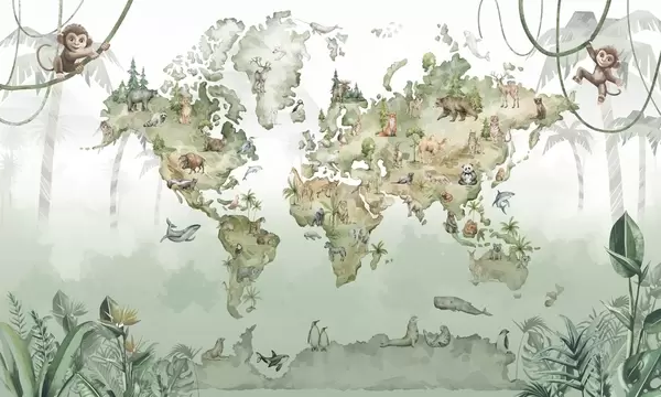 Fototapeedid Illustreeritud maailmakaart loomade ja džunglitega Nr w04418v1
