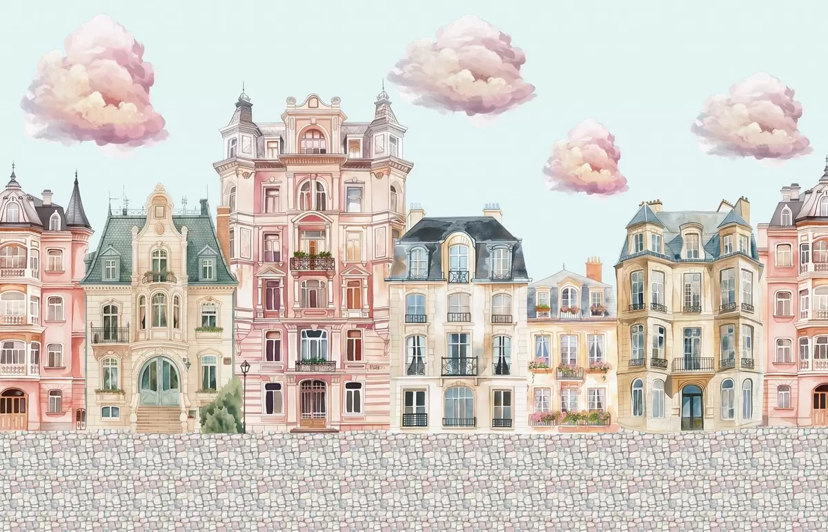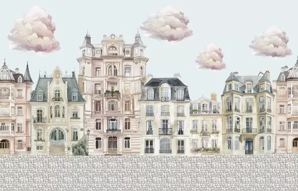 Fototapeedid Värvilised majad, pilved Nr w04474