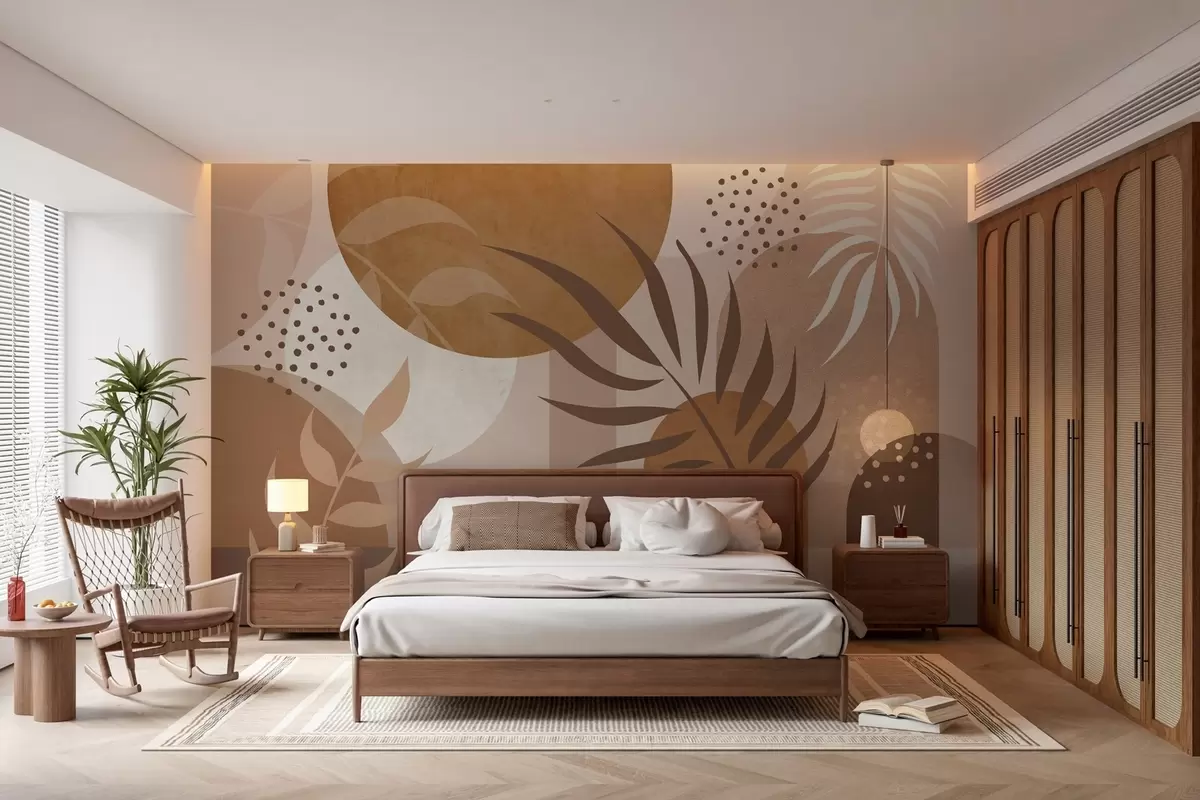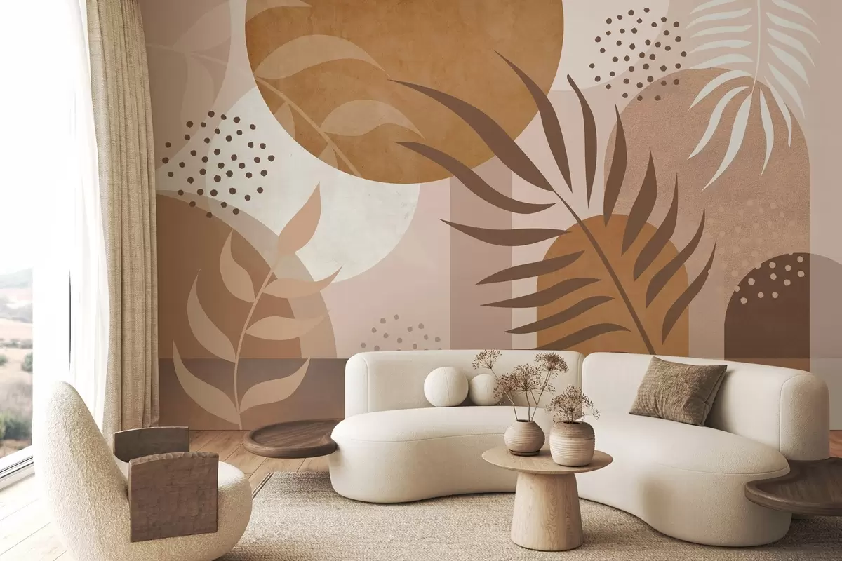 Fototapeedid Kaasaegne abstraktsioon taimede pruuni ja beeži toonidega Nr w04497