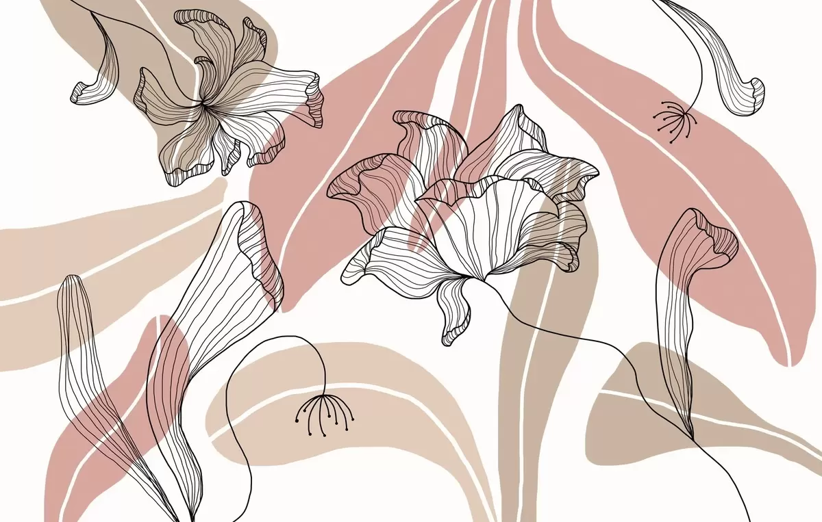 Fototapeedid abstraktsed lehed ja lilled puudritoose ja beežides toonides Nr w04499