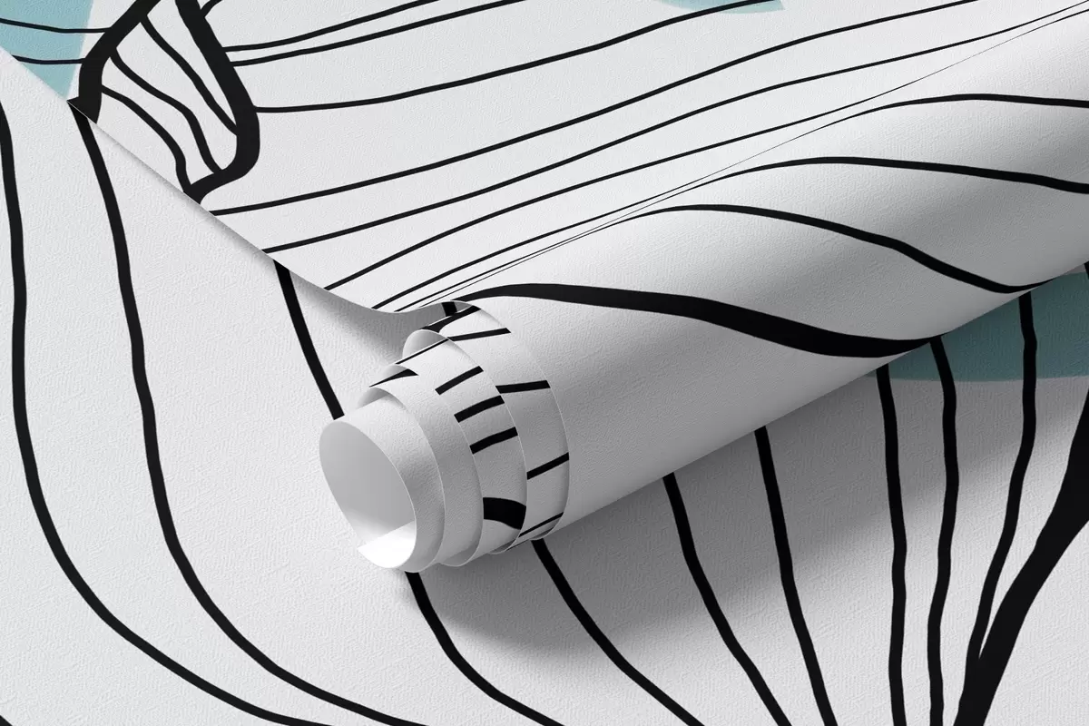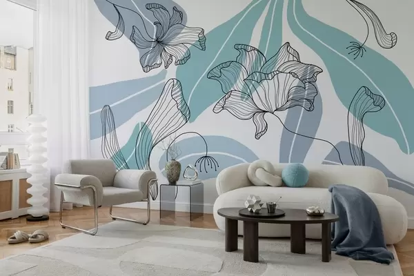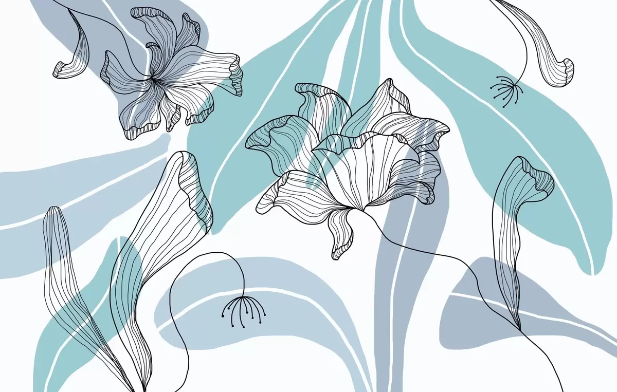 Fototapeedid sinistes toonides abstraktsed lehed ja lilled Nr w04499v2