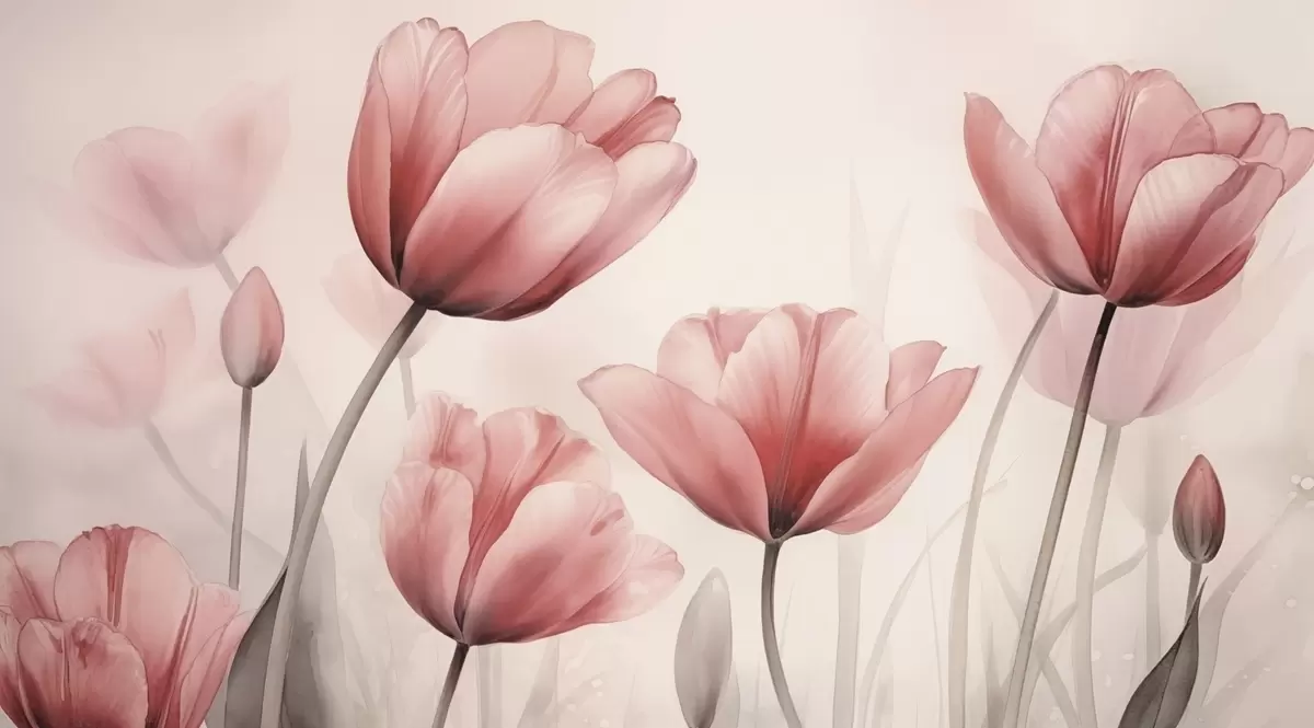 Fototapeedid Põlenud efektiga ja tekstuuriga tulbid Nr w04519