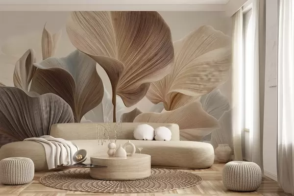 Fototapeedid Elegantsed beežid lehed peene lineaarsete tekstuuridega Nr w04549