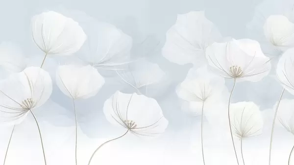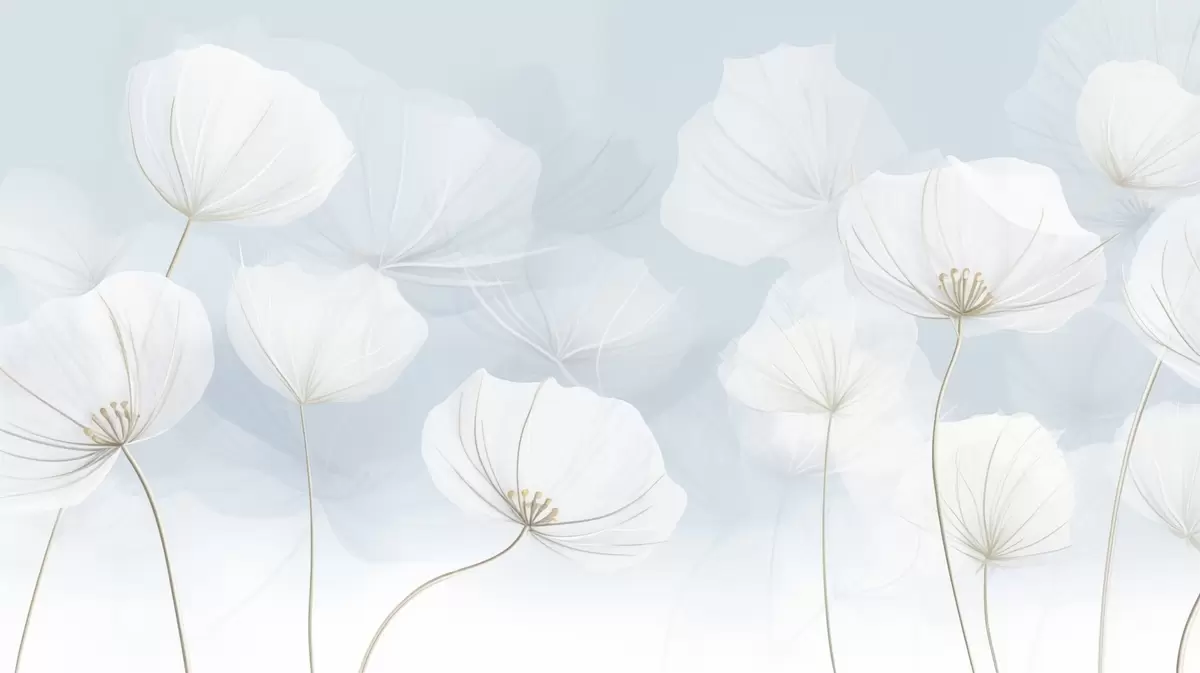 Fototapeedid Õhulised valged lilled sinisel taustal Nr w04580