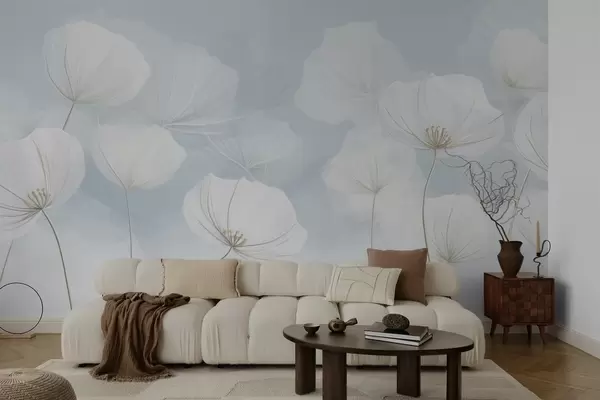 Fototapeedid Õhulised valged lilled sinisel taustal Nr w04580