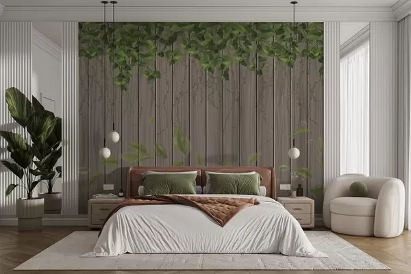 Fototapeedid Imitatsioonpuidust lauad rippuvate lehtedega Nr w04603