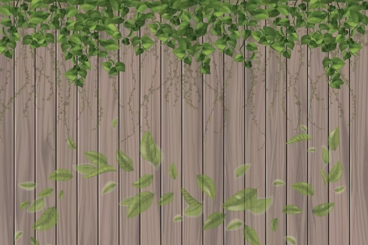 Fototapeedid Imitatsioonpuidust lauad rippuvate lehtedega Nr w04603