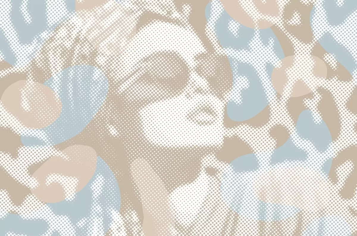 Fototapeedid naise portree leopardi taustal punktiirstiilis beeži ja sinistes toonides Nr w04630