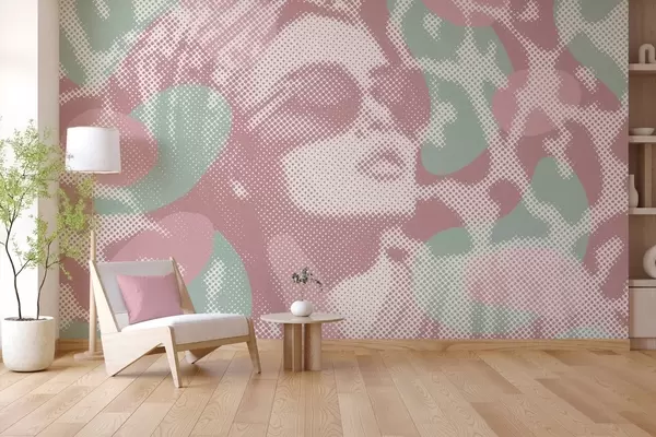 Fototapeedid naise portree leopardi taustal punktiirstiilis roosa ja rohelistes toonides Nr w04630v2
