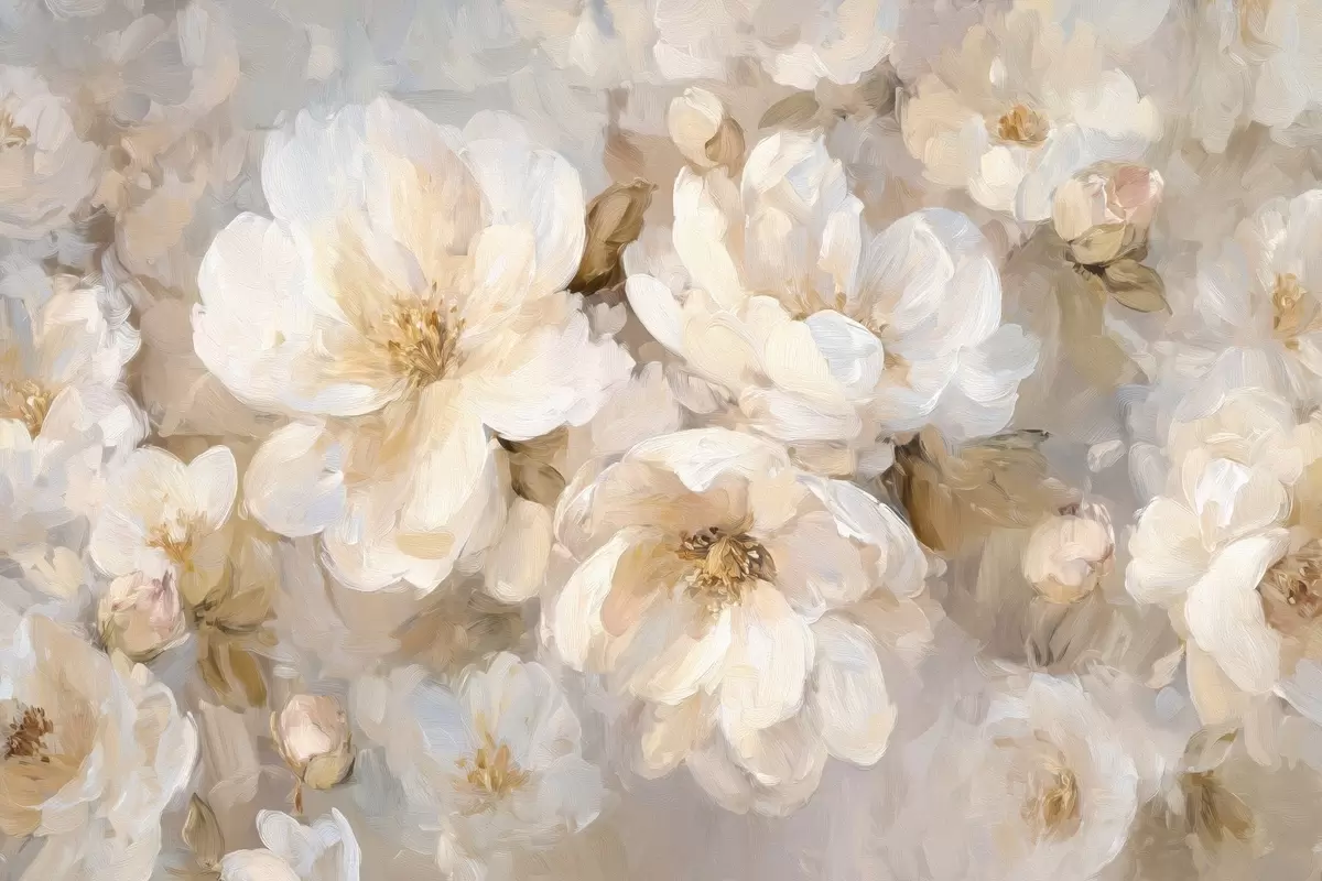 Fototapeedid suured lilled valge ja beeži toonides õlimaalistiilis Nr w04633