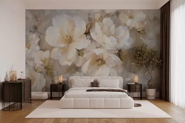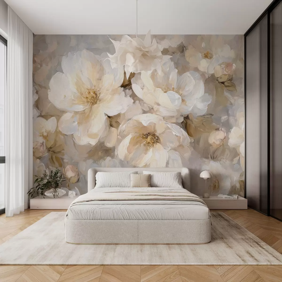 Fototapeedid suured lilled valge ja beeži toonides õlimaalistiilis Nr w04633
