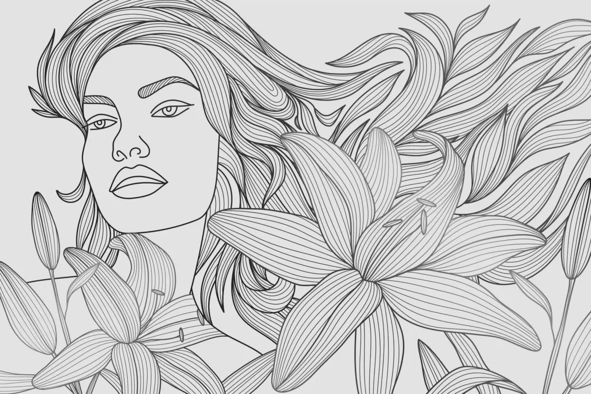 Fototapeedid Lillede keskel istuva tüdruku portree Nr w04689