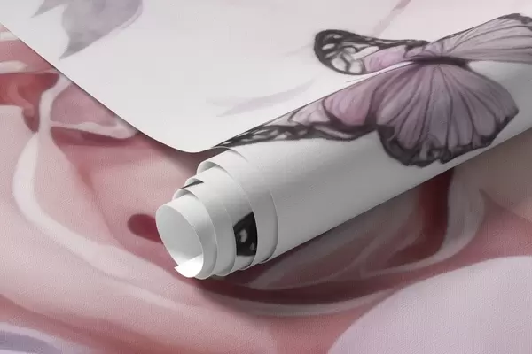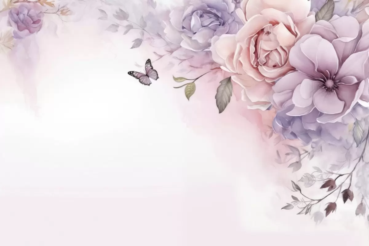 Fototapeedid Õrnad roosa ja lilla õied koos liblikaga Nr w04711