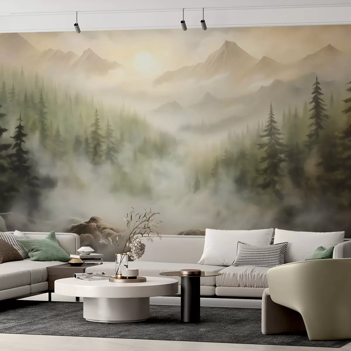 Fototapeedid Mägedega taustal udus olev mets Nr w04730