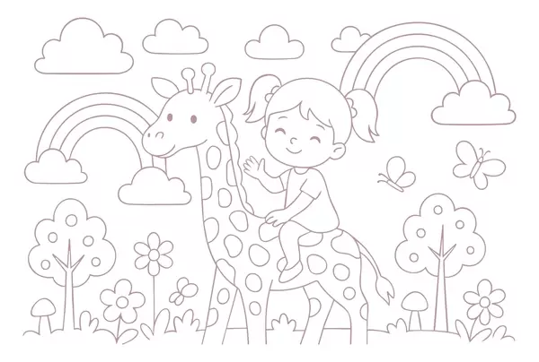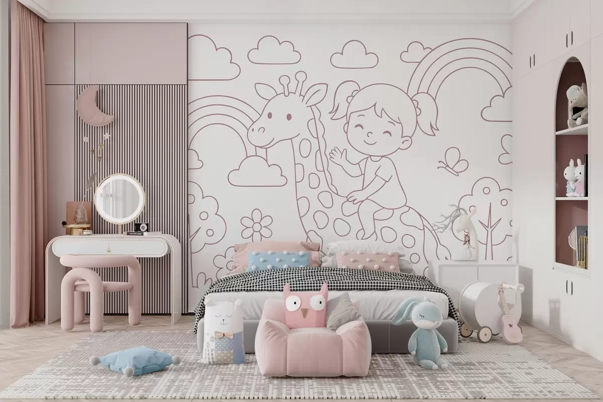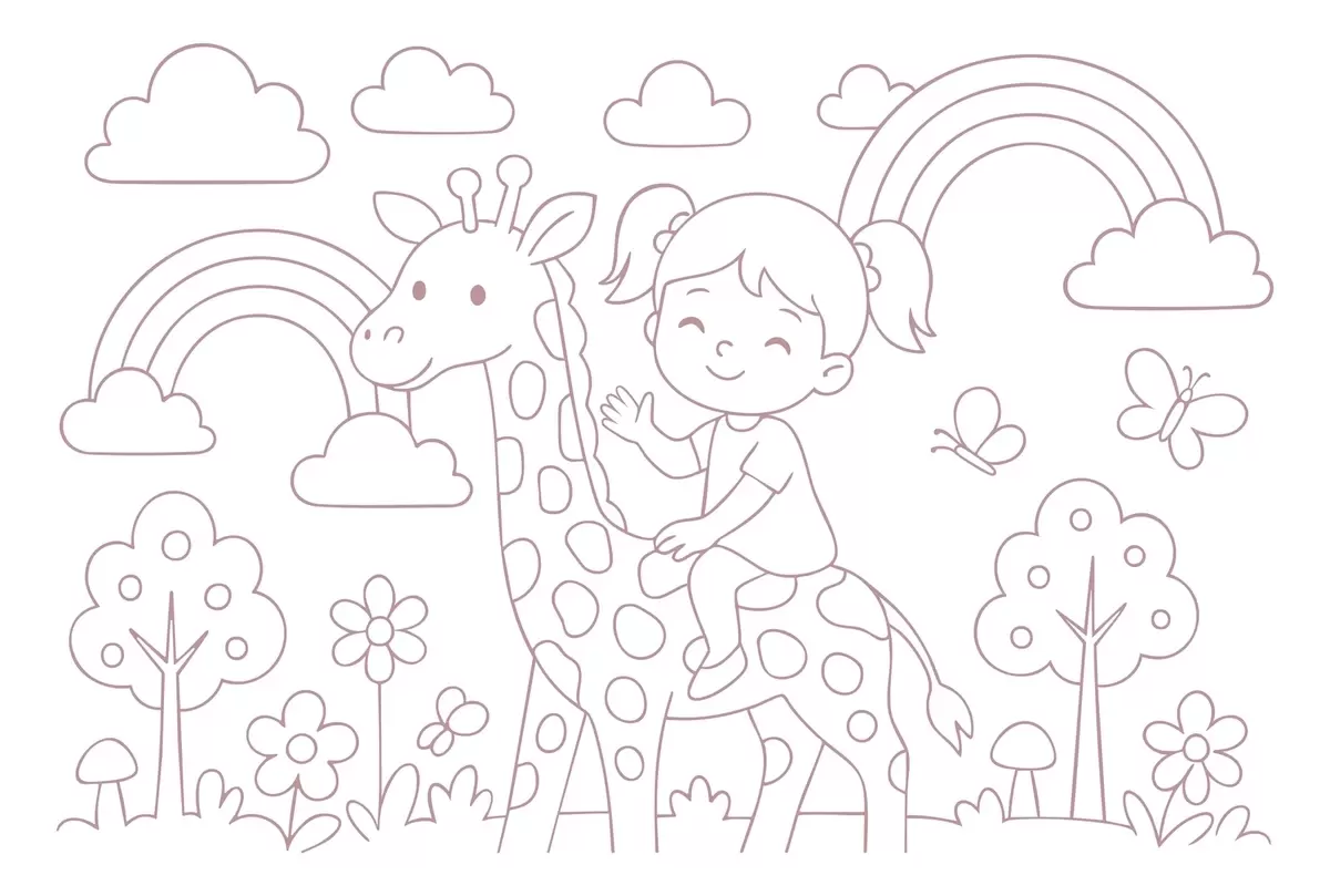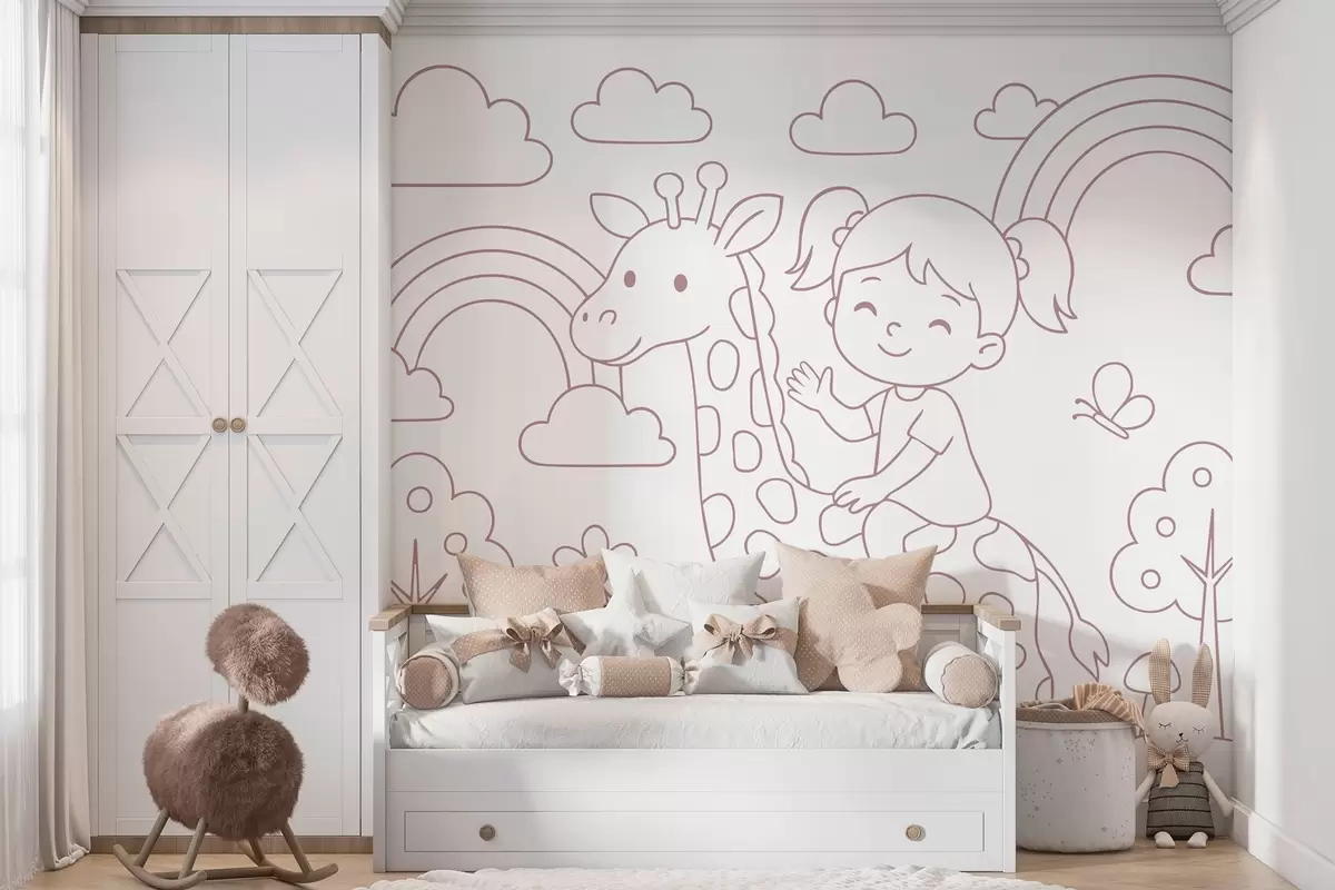 Fototapeedid laste värviraamatu stiilis pulbermaal tüdrukust kaelkirjakul Nr w04753v1