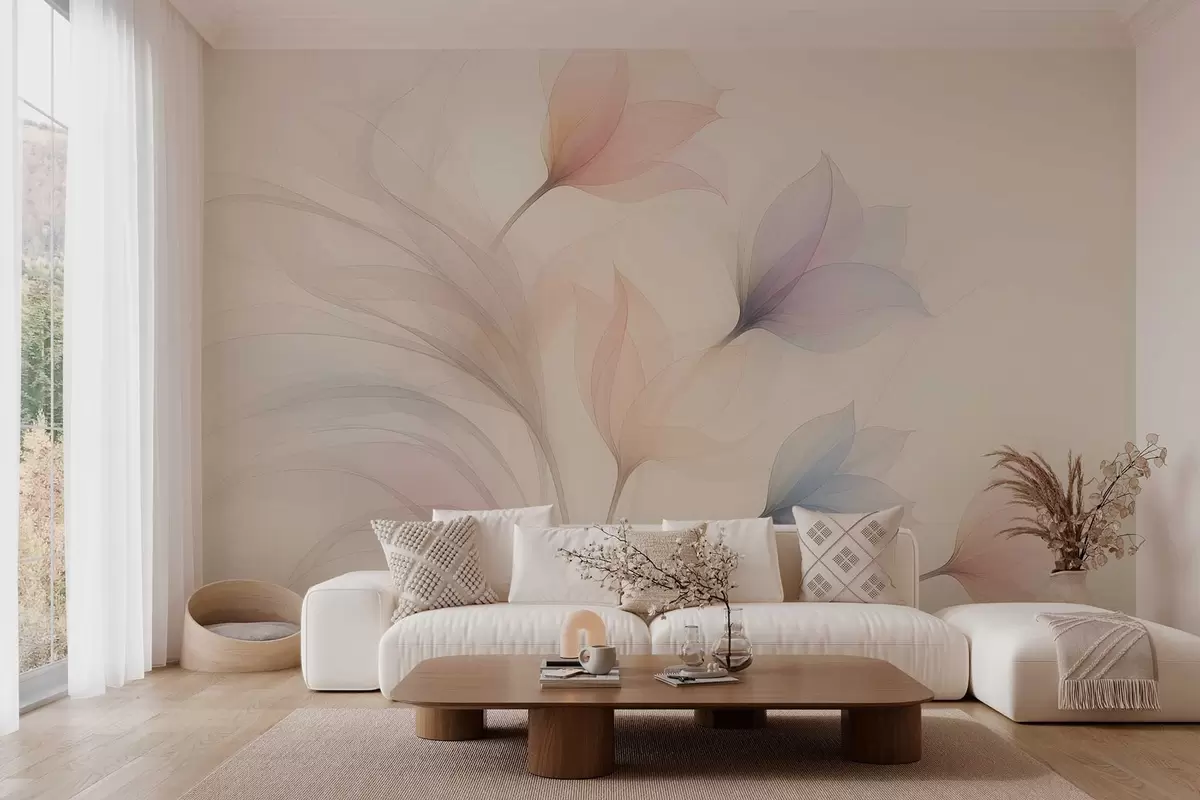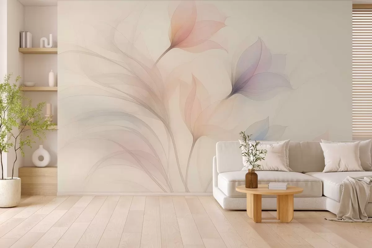 Fototapeedid õrnad poolläbipaistvad tulbid beežil taustal Nr w04754