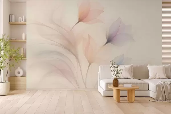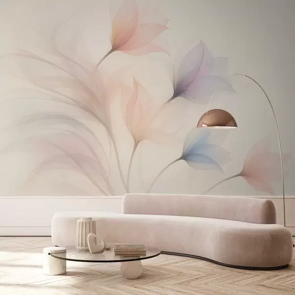 Fototapeedid õrnad poolläbipaistvad tulbid beežil taustal Nr w04754
