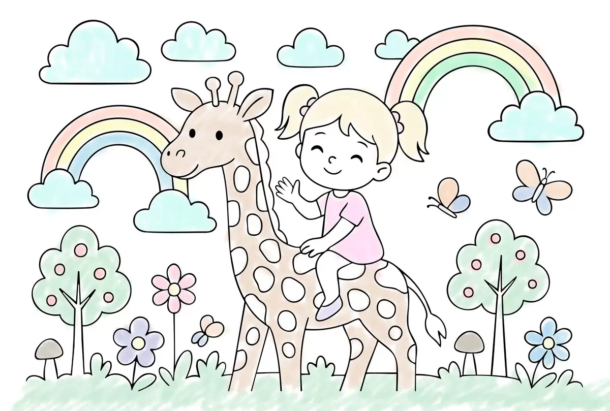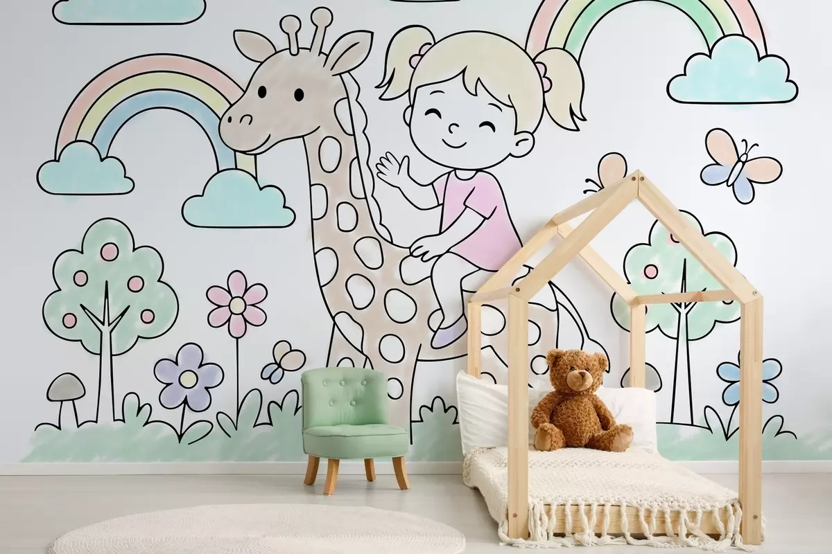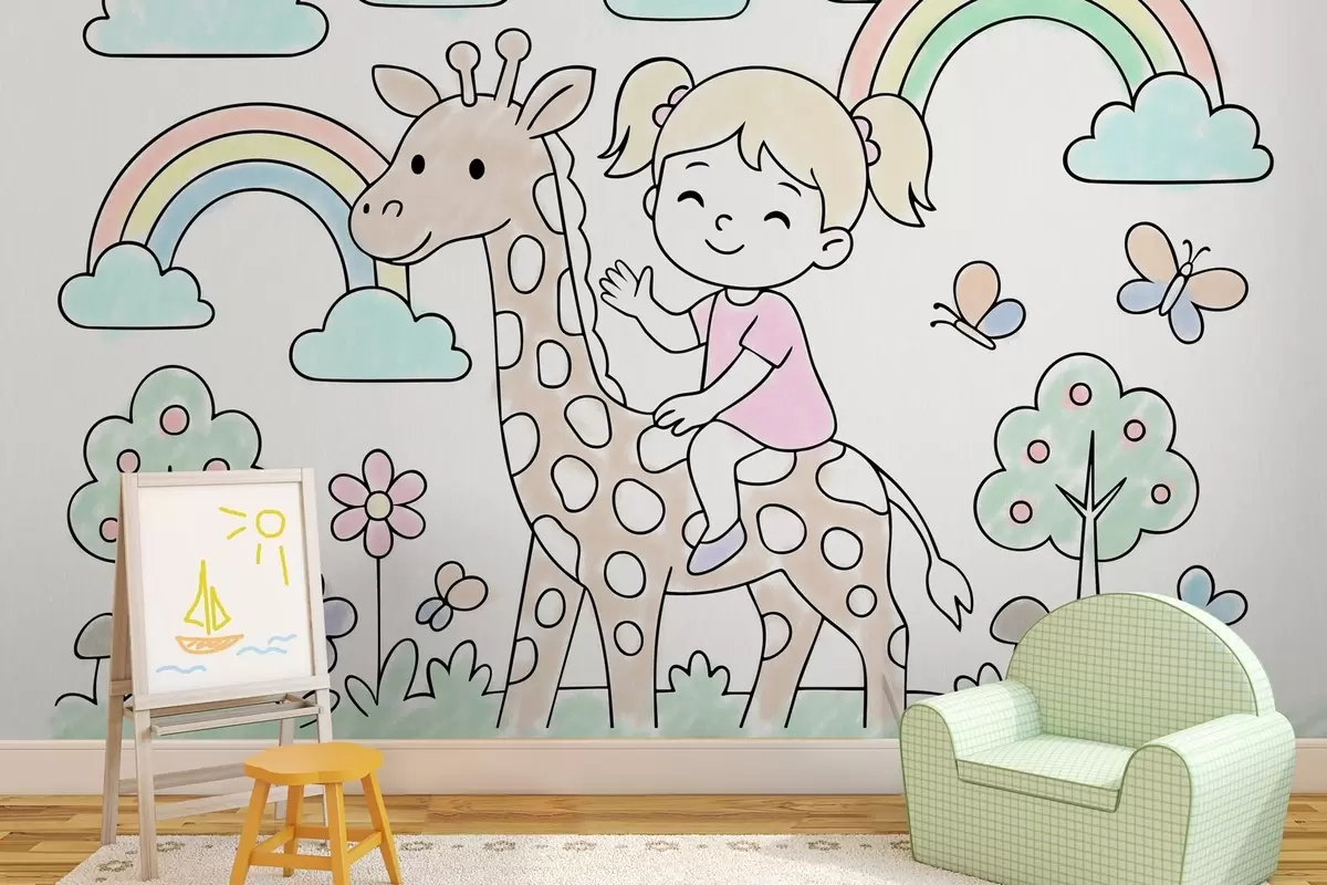 Fototapeedid tüdruk kaelkirjakul laste värviraamatu stiilis Nr w04755