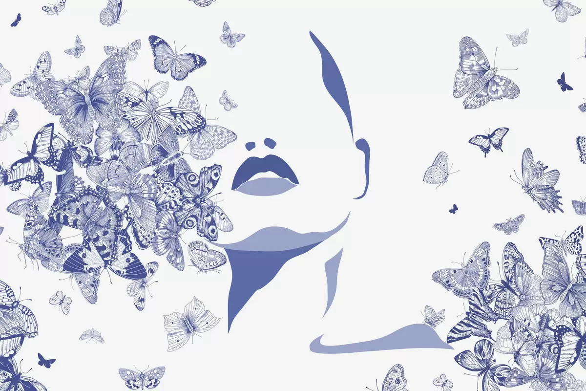 Fototapeedid Näo siluett liblikate seas Nr w04778v1