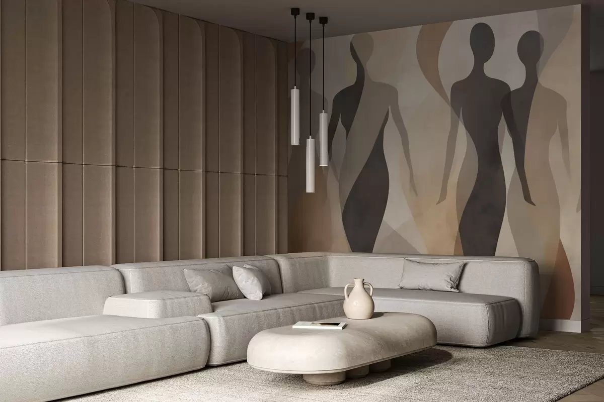 Fototapeedid Silhouetted figuurid ja pehmed lained soojades beež-hallides toonides Nr w04787