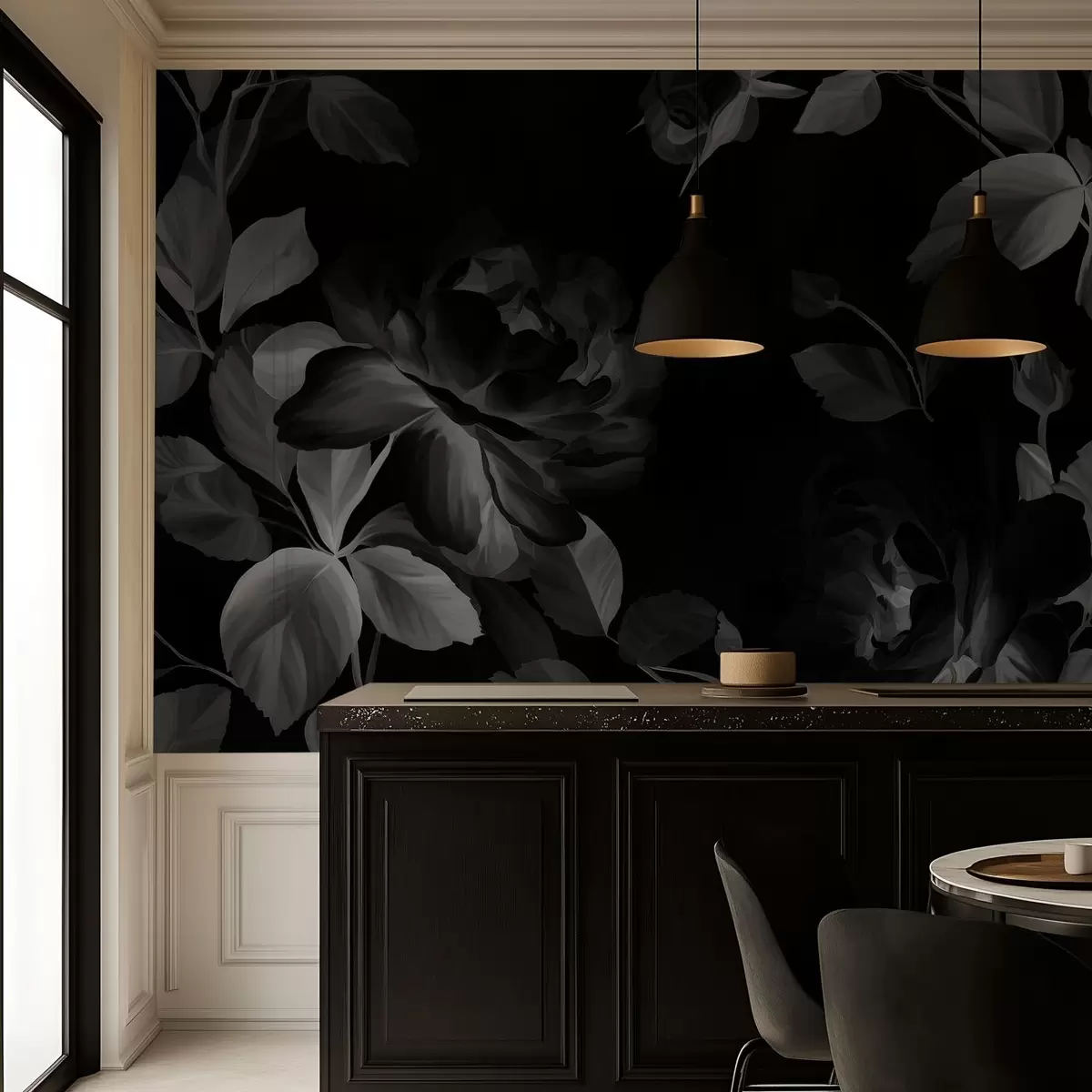 Fototapeedid must-valged maalilised roosid õlimaalistiilis Nr w04873v1