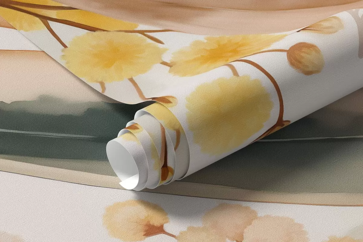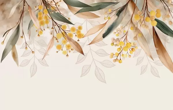 Fototapeedid akvarellistiilis ülalt langevad mimoosa õied ja lehed Nr w04880