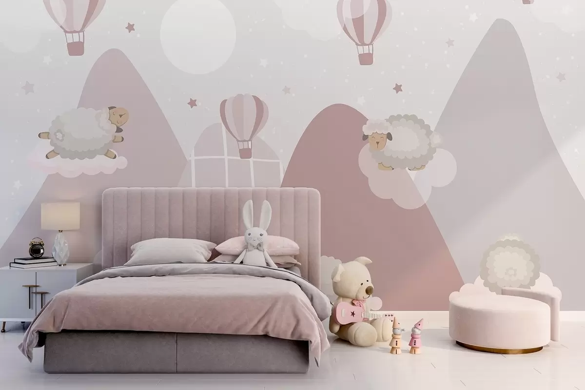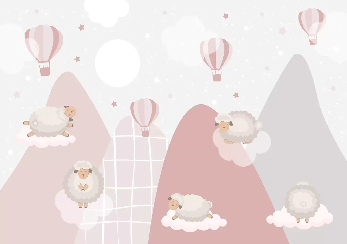 Fototapeedid Magavad lambad roosadel mägedel Nr w04932