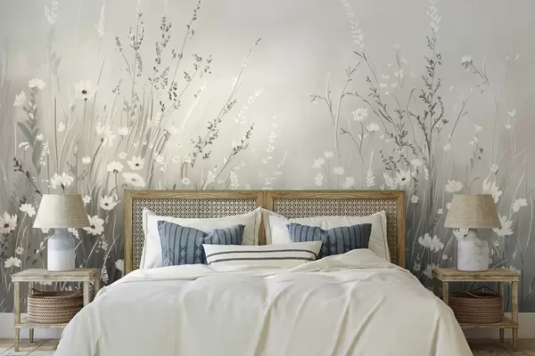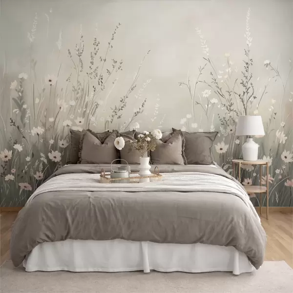 Fototapeedid Pehme heinamaa stseen valgetest lilledest ja õrnadest rohtudest Nr w05015v1