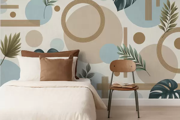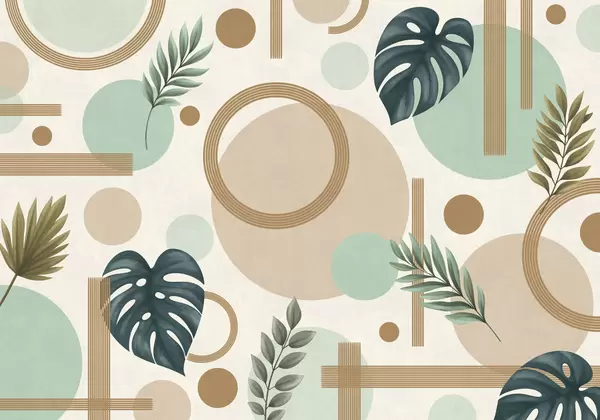 Fototapeedid Geomeetriline muster lehtede ja ringidega rahulikes toonides Nr w05018
