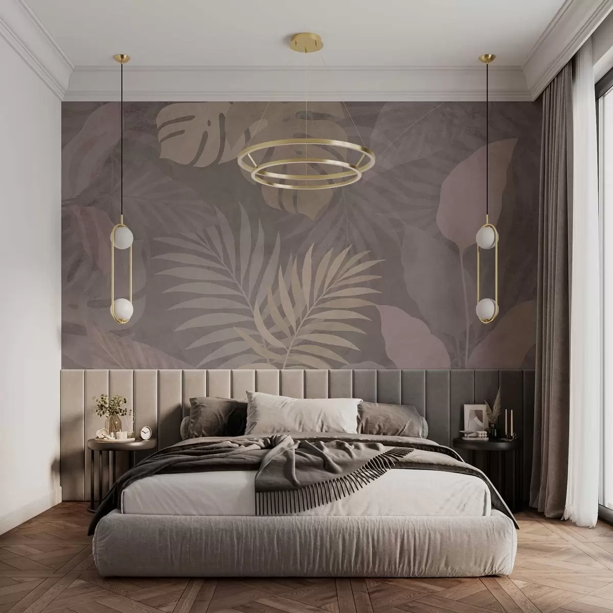 Fototapeedid tekstuuriga troopilised lehed hallil taustal Nr w05063v1